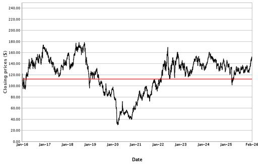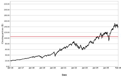 The following graphs set forth historical closing values of the Underliers for the period from January 1, 2016 to February 24, 2026. Each red line represents the Coupon Threshold and Barrier Value of the relevant Underlier. We obtained the information in the graphs from Bloomberg Financial Markets, without independent investigation. We cannot give you assurance that the performance of the Underliers will result in the return of all of your initial investment.