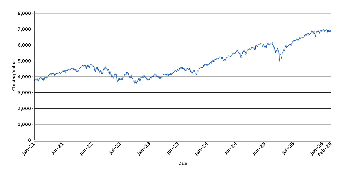 The graph below sets forth the historical performance of the SPX Index based on the daily Closing Value from January 4, 2021 through February 26, 2026. We obtained the Closing Values shown in the graph below from Bloomberg Professional® service (“Bloomberg”). We have not independently verified the accuracy or completeness of the information obtained from Bloomberg.