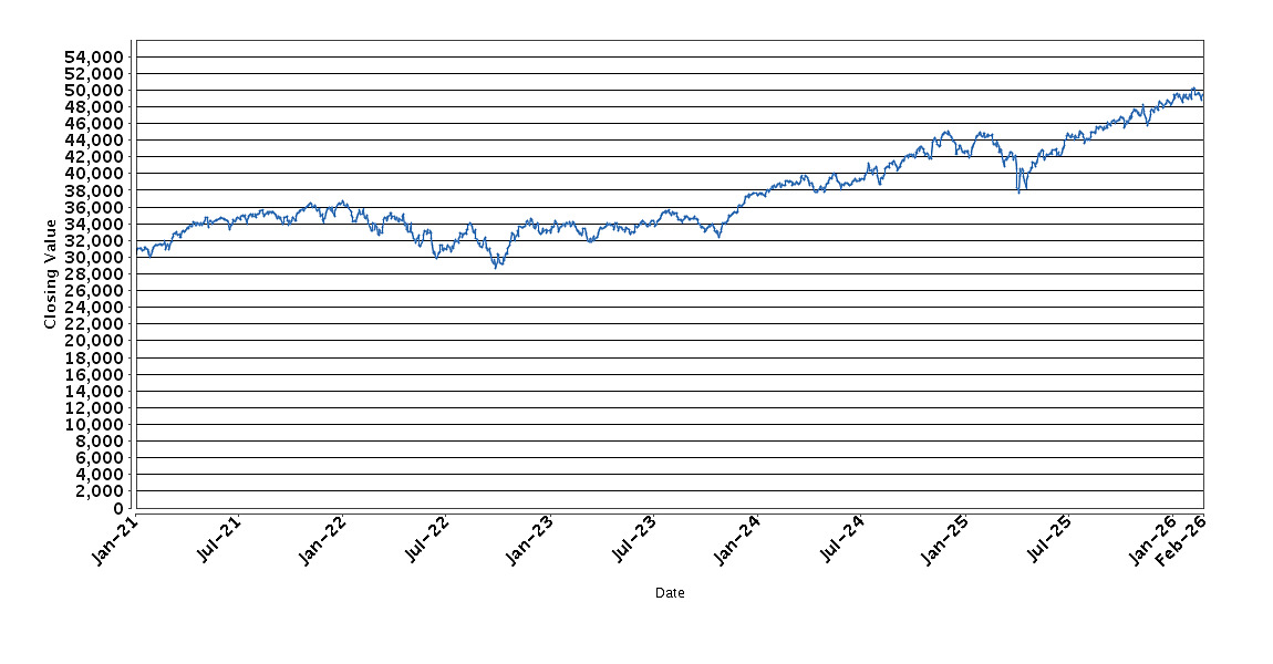The graph below sets forth the historical performance of the INDU Index based on the daily Closing Value from January 4, 2021 through February 26, 2026. We obtained the Closing Values shown in the graph below from Bloomberg. We have not independently verified the accuracy or completeness of the information obtained from Bloomberg.
