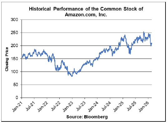 The following graph sets forth daily closing prices of the common stock of Amazon.com, Inc. for the period from January 4, 2021 to February 26, 2026. The closing price on February 26, 2026 was $207.92. The historical performance of the common stock of Amazon.com, Inc. should not be taken as an indication of its future performance during the term of the securities.