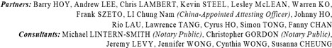| (x) | The information disclosed by the public searches conducted in Hong Kong was accurate and that there has been no alteration in the status or condition of the Companies since the date of those searches and no additional matters would have been disclosed by such searches being carried out at any later time. |