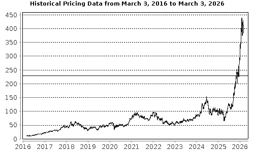 The graph below illustrates the performance of Micron's common stock for the period indicated, based on the daily closing levels as reported by Bloomberg, without independent verification. UBS has not conducted any independent review or due diligence of any publicly available information obtained from Bloomberg. The solid line represents its coupon barrier and downside threshold of $227.81, which is equal to 60.00% of the closing level on March 03, 2026. Past performance of the underlying asset is not indicative of the future performance of the underlying asset during the term of the Notes. |
