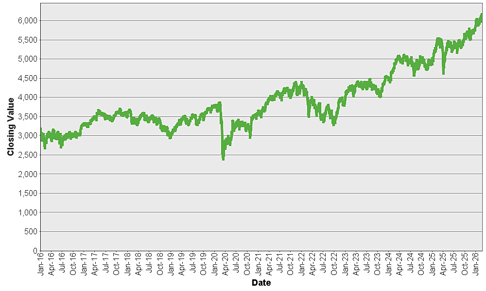The graph below shows the closing value of the S&P 500® Index for each day such value was available from January 4, 2016 to February 27, 2026. We obtained the closing values from Bloomberg L.P., without independent verification. You should not take historical closing values as an indication of future performance.