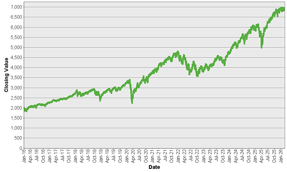 The graph below shows the closing value of the S&P 500® Index for each day such value was available from January 4, 2016 to March 2, 2026. We obtained the closing values from Bloomberg L.P., without independent verification. You should not take historical closing values as an indication of future performance.
