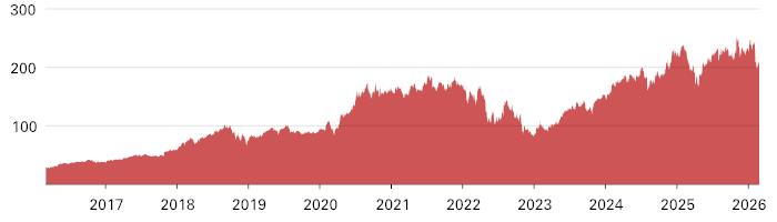 The following graph sets forth the historical performance of AMZN based on the daily historical closing values from February 29, 2016 through February 27, 2026. We obtained the closing values below from the Bloomberg Professional® service. We have not undertaken any independent review of, or made any due diligence inquiry with respect to, the information obtained from the Bloomberg Professional® service.![]() |