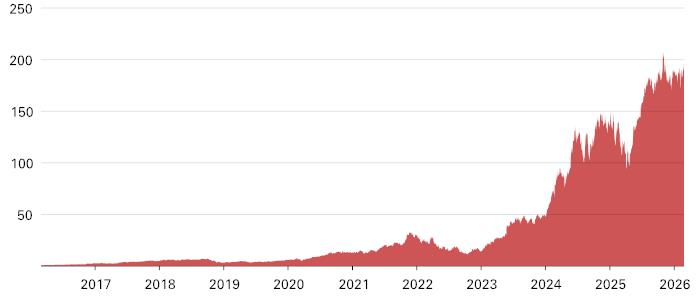 The following graph sets forth the historical performance of NVDA based on the daily historical closing values from February 29, 2016 through February 27, 2026. We obtained the closing values below from the Bloomberg Professional® service. We have not undertaken any independent review of, or made any due diligence inquiry with respect to, the information obtained from the Bloomberg Professional® service.![]() |