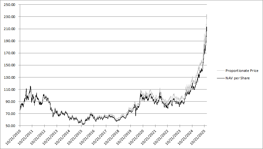 shares outstanding based upon the closing price of a share on June 30, 2025 as reported by the NYSE Arca, Inc. on that date: $
