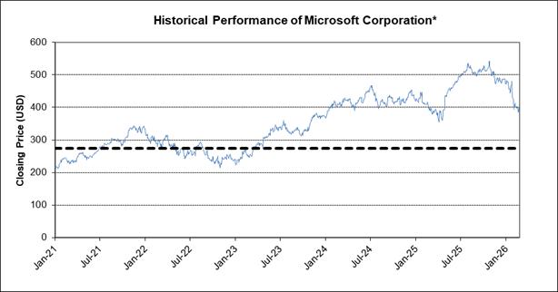 The following graph sets forth daily closing prices of the MSFT Stock for the period from January 1, 2021 to February 27, 2026. The closing price on February 27, 2026 was $392.74. The closing prices below may reflect adjustments in response to certain corporate actions, such as stock splits, public offerings, mergers and acquisitions, spin-offs, extraordinary dividends, delistings and bankruptcy.