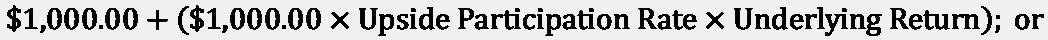 If the Notes have not been automatically called prior to maturity, the Redemption Amount per $1,000.00 in principal amount of Notes will be: a) If the Ending Value of the Underlying is greater than or equal to the Redemption Barrier: