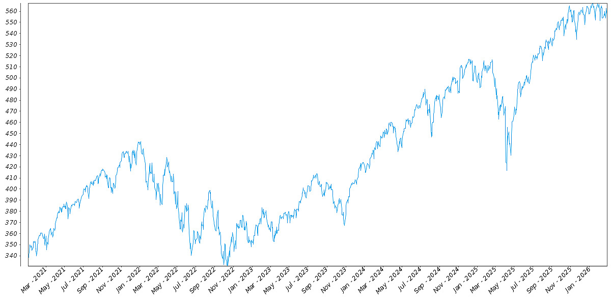 The following graph sets forth the daily historical performance of the SPXFP in the period from January 2, 2021 through the pricing date. We obtained this historical data from Bloomberg L.P. We have not independently verified the accuracy or completeness of the information obtained from Bloomberg L.P. On the pricing date, the closing level of the SPXFP was 557.04.