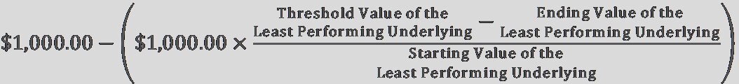 c) If the Ending Value of the Least Performing Underlying is less than its Threshold Value: