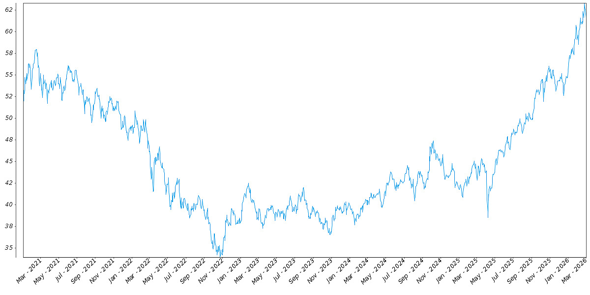The following graph sets forth the daily historical performance of the EEM in the period from January 2, 2021 through March 2, 2026. We obtained this historical data from Bloomberg L.P. We have not independently verified the accuracy or completeness of the information obtained from Bloomberg L.P. On March 2, 2026, the Closing Market Price of the EEM was $61.50.