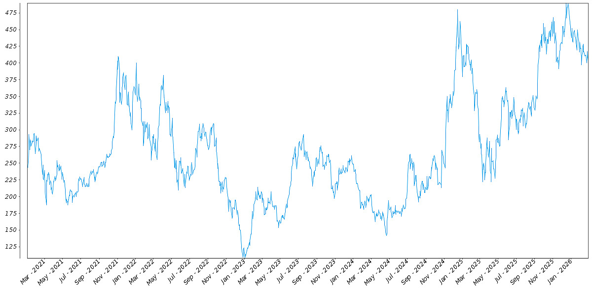 The following graph sets forth the daily historical performance of TSLA in the period from January 2, 2021 through the pricing date. We obtained this historical data from Bloomberg L.P. We have not independently verified the accuracy or completeness of the information obtained from Bloomberg L.P. The Closing Market Prices reflected in the graph below may have been adjusted to reflect certain corporate actions, such as stock splits and reverse stock splits. On the pricing date, the Closing Market Price of TSLA was $402.51.