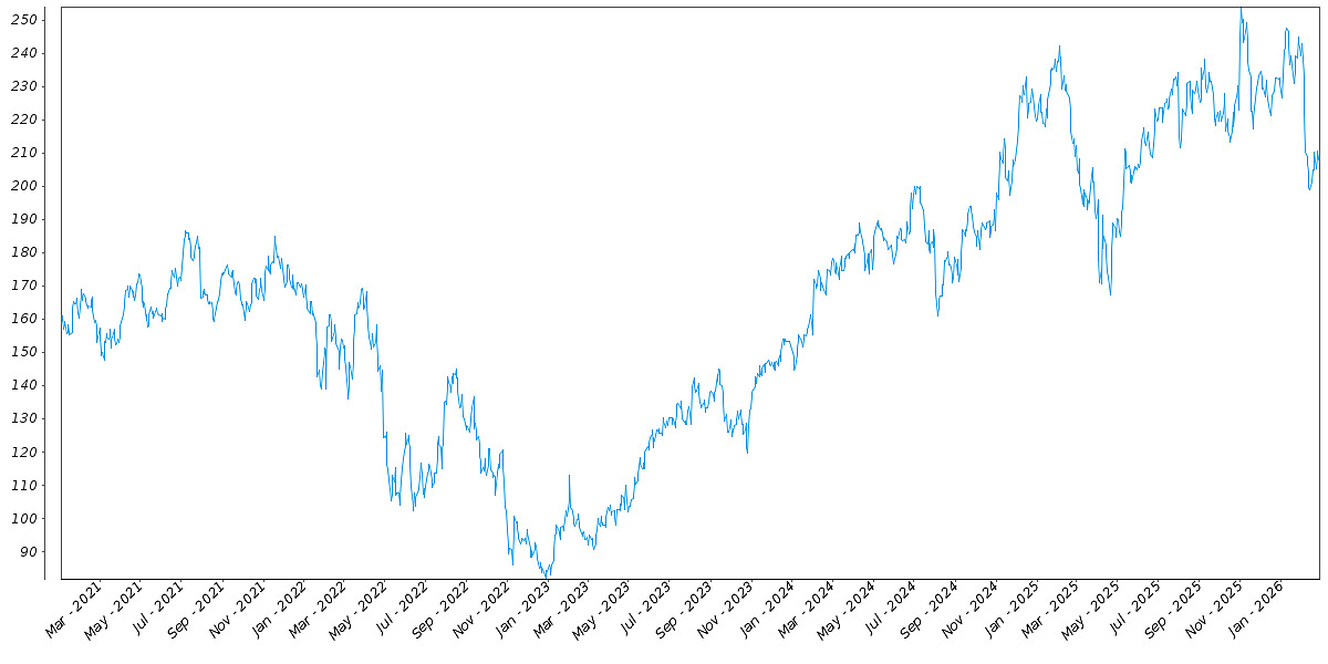 The following graph sets forth the daily historical performance of AMZN in the period from January 2, 2021 through the pricing date. We obtained this historical data from Bloomberg L.P. We have not independently verified the accuracy or completeness of the information obtained from Bloomberg L.P. The Closing Market Prices reflected in the graph below may have been adjusted to reflect certain corporate actions, such as stock splits and reverse stock splits. On the pricing date, the Closing Market Price of AMZN was $210.00.