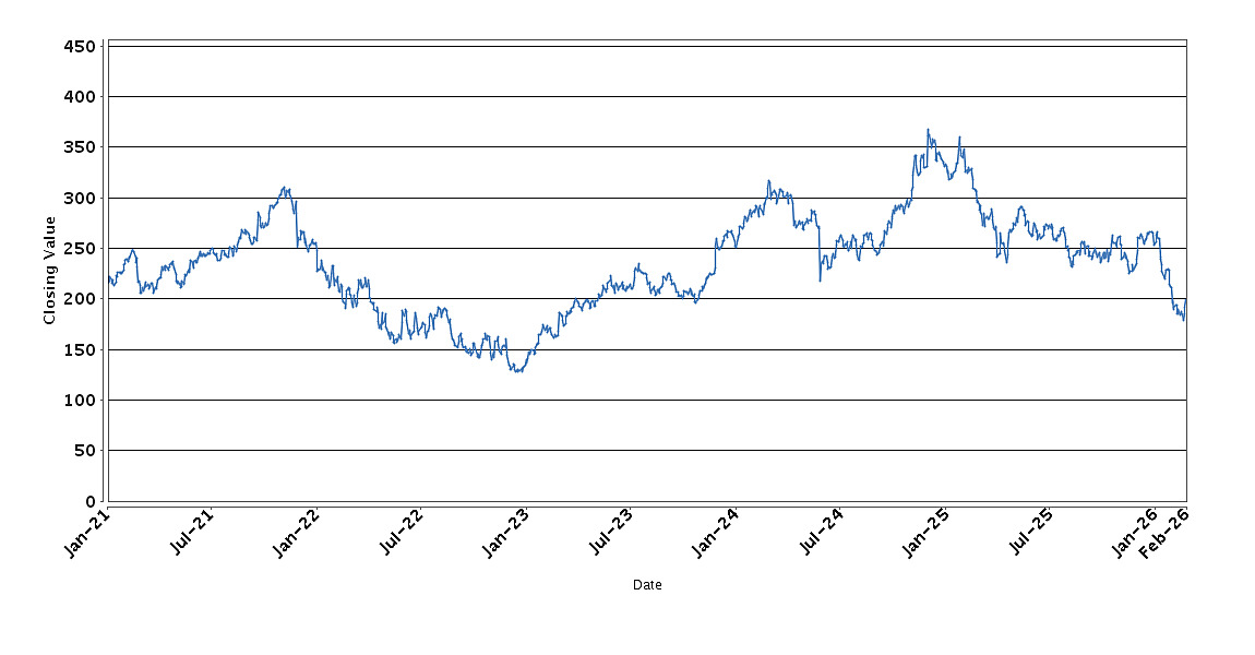 The graph below sets forth the historical performance of Salesforce, Inc. based on the daily Closing Value from January 4, 2021 through February 27, 2026. We obtained the Closing Values shown in the graph below from Bloomberg. We have not independently verified the accuracy or completeness of the information obtained from Bloomberg. These historical closing values may have been adjusted to reflect certain corporate actions such as stock splits and reverse stock splits.