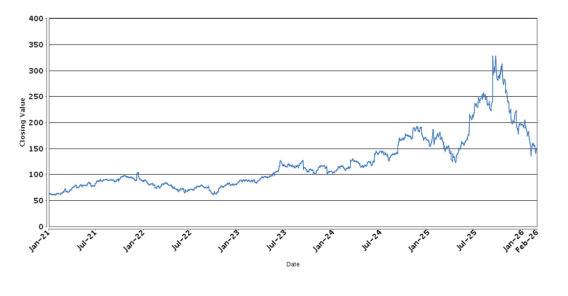 The graph below sets forth the historical performance of Oracle Corporation based on the daily Closing Value from January 4, 2021 through February 27, 2026. We obtained the Closing Values shown in the graph below from Bloomberg. We have not independently verified the accuracy or completeness of the information obtained from Bloomberg. These historical closing values may have been adjusted to reflect certain corporate actions such as stock splits and reverse stock splits.
