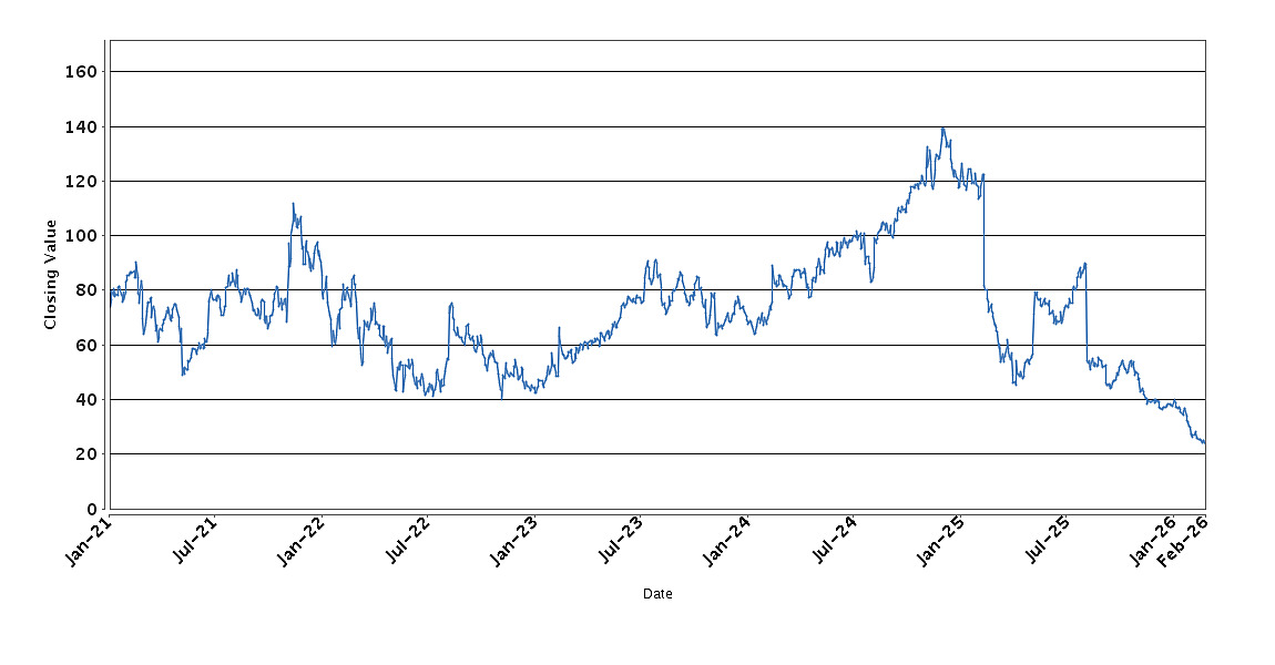 The graph below sets forth the historical performance of Trade Desk, Inc. based on the daily Closing Value from January 4, 2021 through February 27, 2026. We obtained the Closing Values shown in the graph below from Bloomberg. We have not independently verified the accuracy or completeness of the information obtained from Bloomberg. These historical closing values may have been adjusted to reflect certain corporate actions such as stock splits and reverse stock splits.
