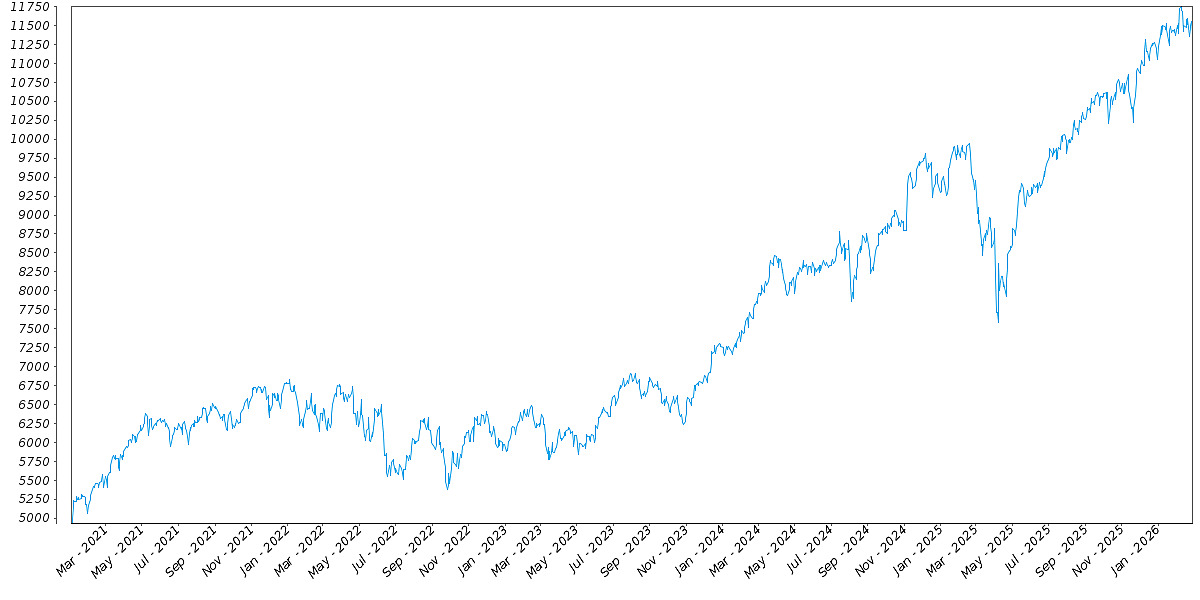 The following graph sets forth the hypothetical back-tested performance of the MGX100 in the period from January 2, 2021 through the pricing date. We obtained this data from Bloomberg L.P. The MGX100 has only been published since April 2025. The hypothetical back-tested performance of the MGX100 set forth in the following graph was calculated using the selection criteria and methodology employed to calculate the MGX100 since its publication in April 2025. However, the hypothetical back-tested MGX100 data only reflects the application of that methodology in hindsight, since the MGX100 was not actually calculated and posted on Bloomberg L.P. prior to April 2025. The hypothetical back-tested MGX100 data cannot completely account for the impact of financial risk in actual trading. There are numerous factors related to the commodities and other markets in general that cannot be, and have not been, accounted for in the hypothetical back-tested MGX100 data, all of which can affect actual performance. Consequently, you should not rely on that data as a reflection of what the actual MGX100 performance would have been had the MGX100 been in existence or in forecasting future MGX100 performance. We have not undertaken any independent review of, or made any due diligence inquiry with respect to, information obtained from Bloomberg L.P. The hypothetical and actual historical performance of the MGX100 is not necessarily an indication of its future performance On the pricing date, the closing level of the MGX100 was 11,391.88.