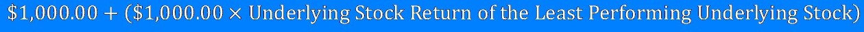 If the Notes have not been automatically called prior to maturity, the Redemption Amount per $1,000.00 in principal amount of Notes will be: a) If the Ending Value of the Least Performing Underlying Stock is greater than or equal to its Threshold Value: