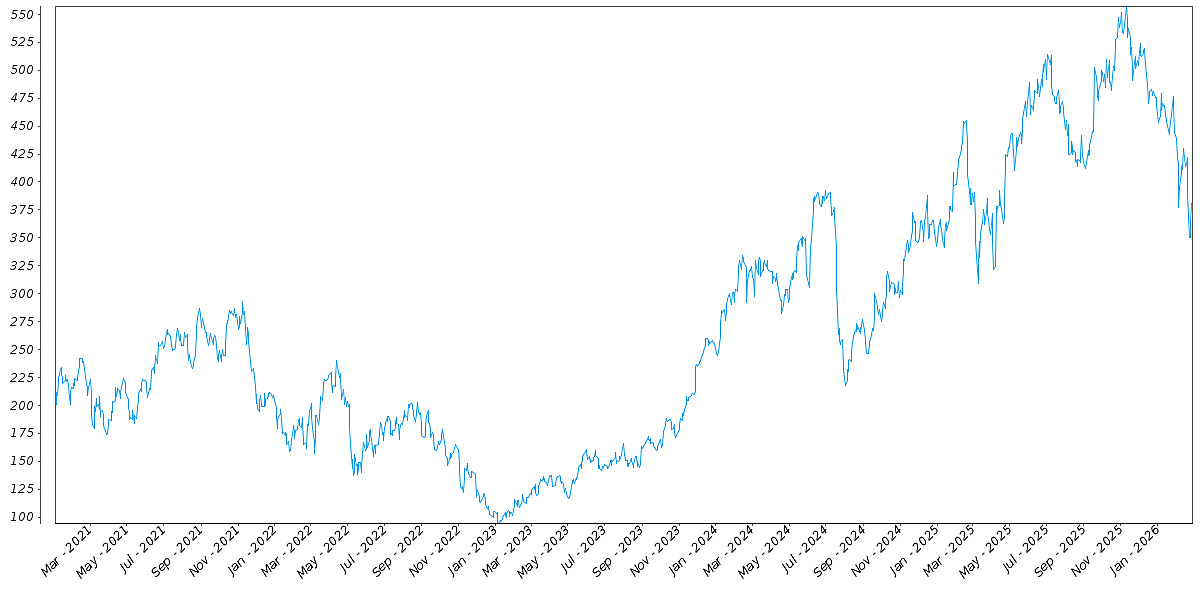 The following graph sets forth the daily historical performance of CRWD in the period from January 2, 2021 through the pricing date. We obtained this historical data from Bloomberg L.P. We have not independently verified the accuracy or completeness of the information obtained from Bloomberg L.P. The Closing Market Prices reflected in the graph below may have been adjusted to reflect certain corporate actions, such as stock splits and reverse stock splits. On the pricing date, the Closing Market Price of CRWD was $371.98.