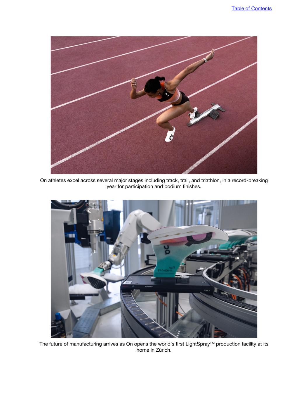 On athletes excel across several major stages including track, trail, and triathlon, in a record-breaking year for participation and podium finishes. The future of manufacturing arrives as On opens the world’s first LightSprayTM production facility at its home in Zürich. Table of Contents