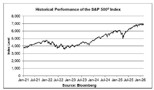 The following graph sets forth the historical performance of the S&P 500® Index based on the daily historical closing levels of the S&P 500® Index from January 4, 2021 through February 27, 2026. The closing level of the S&P 500® Index on February 27, 2026 was 6,878.88. We obtained the closing levels above and below from the Bloomberg Professional® service (“Bloomberg”), without independent verification.
