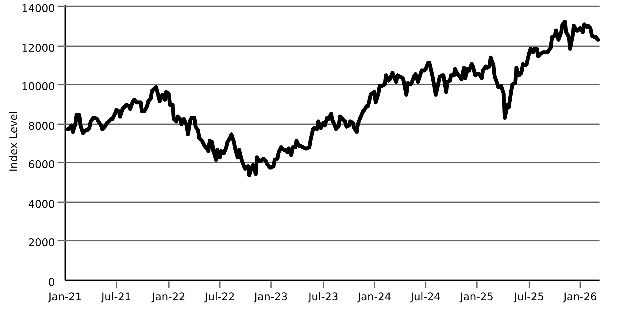The following graphs set forth the historical performance of each Index based on the weekly historical closing levels from January 8, 2021 through February 27, 2026. The closing level of the Nasdaq-100® Technology Sector IndexSM on February 27, 2026 was 12,292.71. The closing level of the Russell 2000® Index on February 27, 2026 was 2,632.361. The closing level of the S&P 500® Index on February 27, 2026 was 6,878.88. We obtained the closing levels above and below from the Bloomberg Professional® service (“Bloomberg”), without independent verification.