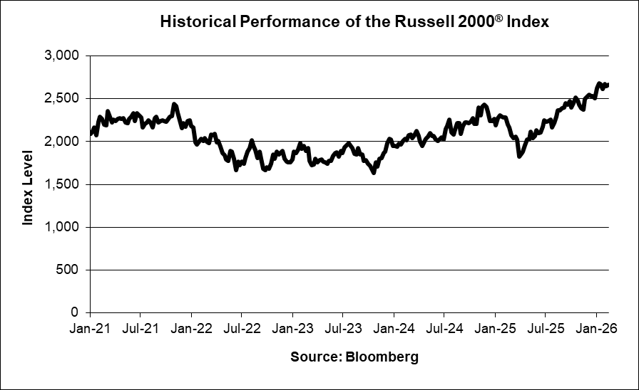 The following graphs set forth the historical performance of each Underlying based on the weekly historical closing values from January 8, 2021 through February 20, 2026. The closing value of the Russell 2000® Index on February 25, 2026 was 2,663.329. The closing value of the Nasdaq-100 Index® on February 25, 2026 was 25,329.04. The closing value of the Fund on February 25, 2026 was $89.91. We obtained the closing values above and below from the Bloomberg Professional® service (“Bloomberg”), without independent verification. The closing values of the Fund above and below may have been adjusted by Bloomberg for actions taken by the Fund, such as stock splits.