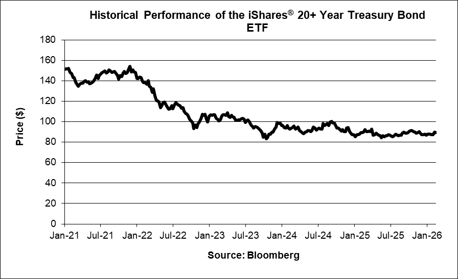 The Fund is an exchange-traded fund of iShares® Trust, a registered investment company, that seeks to track the investment results, before fees and expenses, of an index composed of U.S. Treasury bonds with remaining maturities greater than twenty years, which is currently the ICE U.S. Treasury 20+ Year Bond Index, which we refer to as the Underlying Index with respect to the Fund. The ICE U.S. Treasury 20+ Year Bond Index measures the performance of the U.S. dollar-denominated, fixed-rate U.S. Treasury market that have a remaining maturity greater than or equal to twenty years. For additional information about the Fund, see “Fund Descriptions — The iShares® 20+ Year Treasury Bond ETF” in the accompanying underlying supplement.