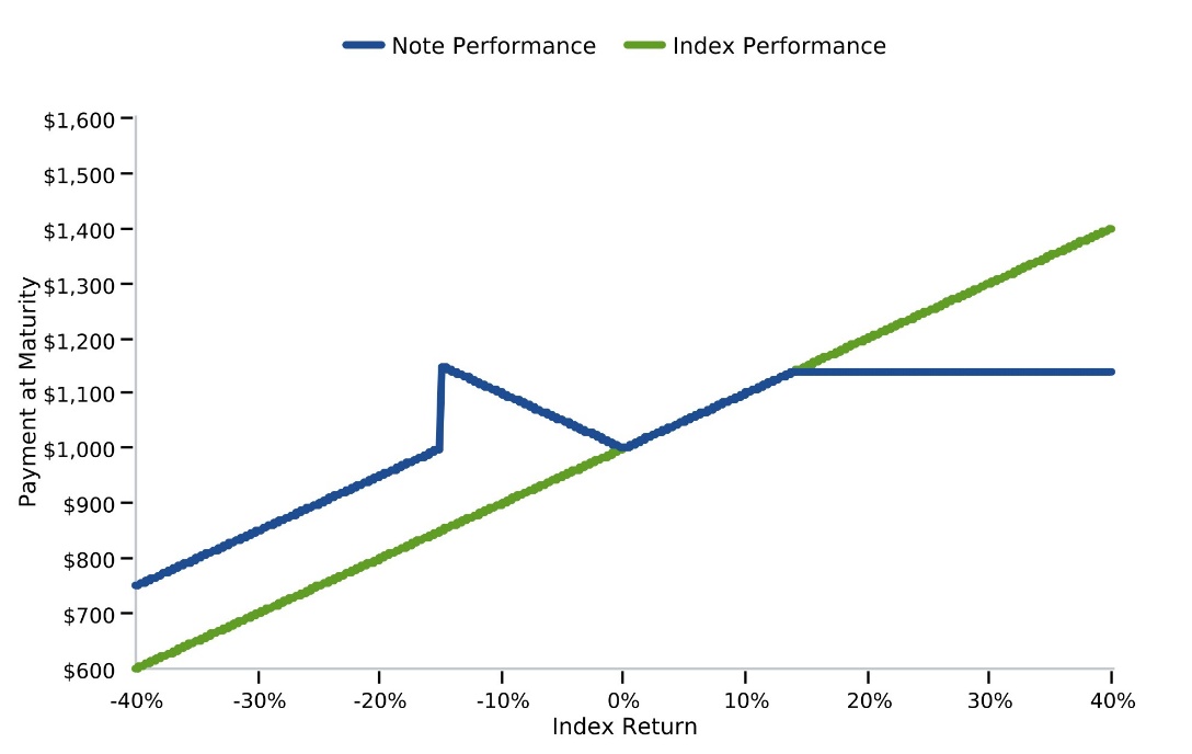 Because the payment at maturity will not reflect the Absolute Index Return if the Final Value is less than the Initial Value by more than the Buffer Amount, the Buffer Amount is effectively a cap on your return at maturity if the Index Return is negative. The maximum payment at maturity if the Index Return is negative is $1,150.00 per $1,000 principal amount note.