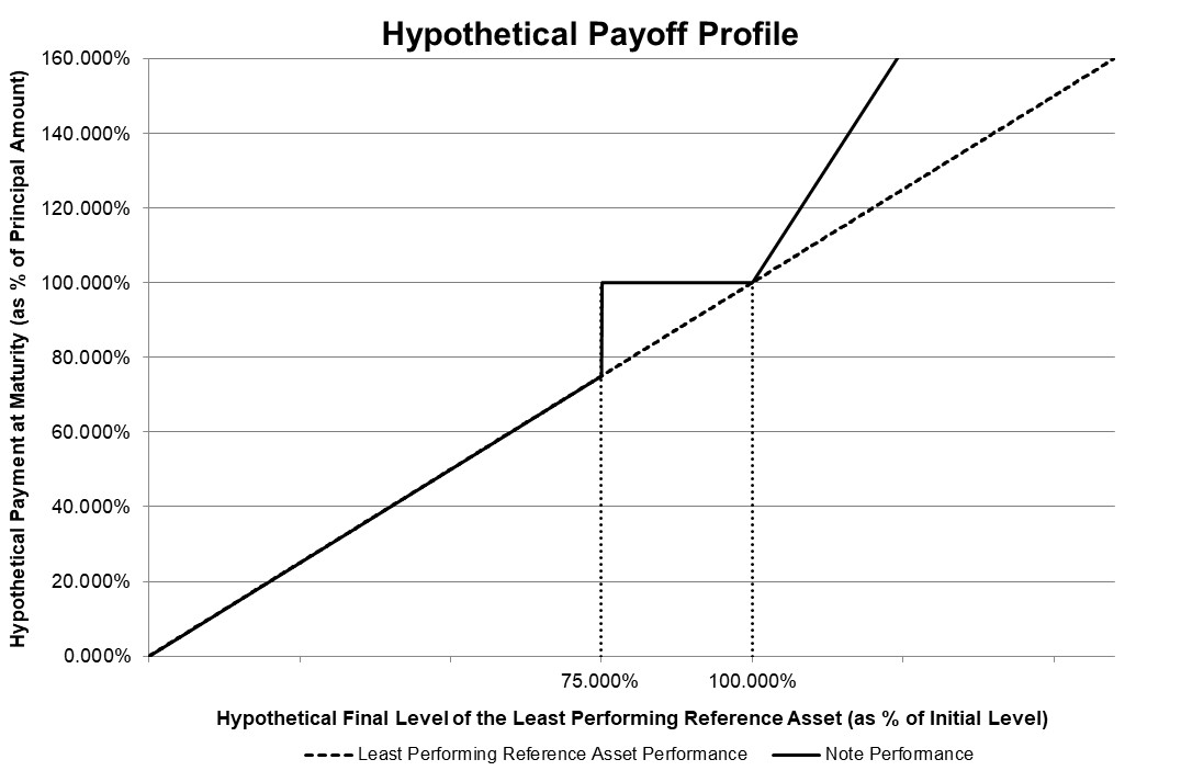 ●if the final level of each reference asset is greater than its initial level, the sum of (i) $1,000 plus (ii) the product of (a) $1,000 times (b) the least performing reference asset return times (c) the participation rate;