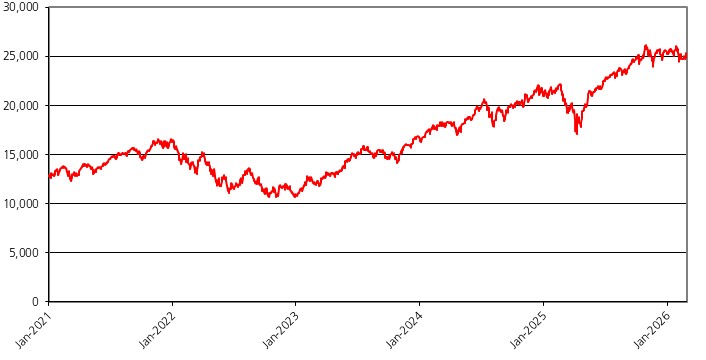 We obtained the information regarding the historical performance of the NDX in the graph below from Bloomberg, without independent review or verification. The graph below illustrates the performance of the NDX from January 1, 2021 through February 27, 2026. The closing level of the NDX on February 27, 2026 was 24,960.04.