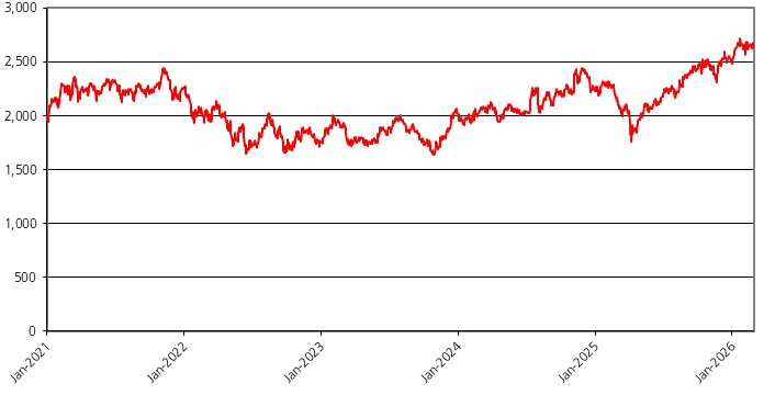 We obtained the information regarding the historical performance of the RTY in the graph below from Bloomberg, without independent review or verification. The graph below illustrates the performance of the RTY from January 1, 2021 through February 27, 2026. The closing level of the RTY on February 27, 2026 was 2,632.361. Currently, Bloomberg reports the closing level of the RTY to fewer decimal places than its sponsor.