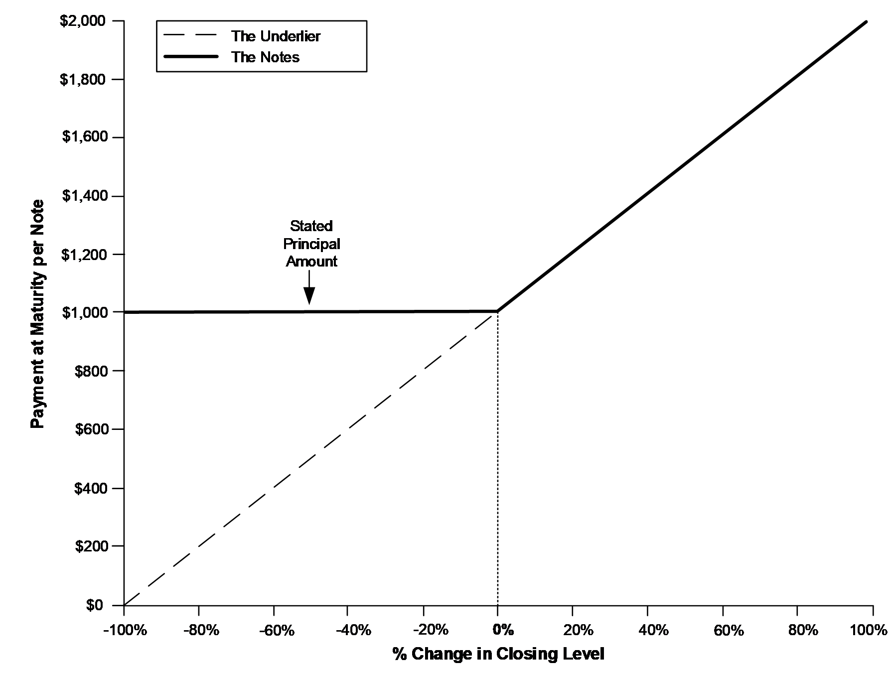 ■Payment at maturity. At maturity, if the final level is greater than the initial level, investors will receive the stated principal amount plus the upside payment. If, however, the final level is equal to or less than the initial level, investors will receive only the stated principal amount at maturity.