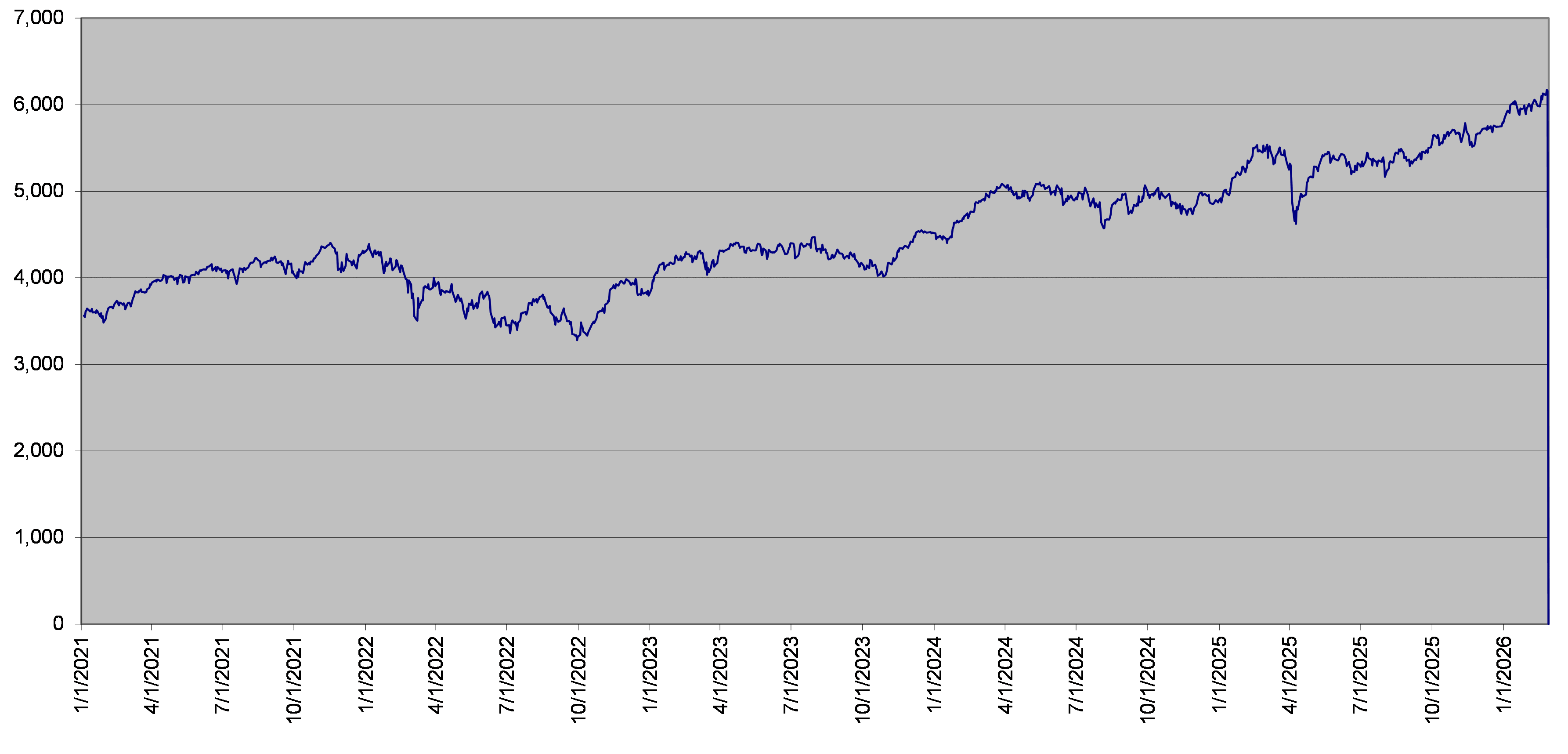 The closing level of the underlier on February 27, 2026 was 6,138.41. The following graph sets forth the daily closing levels of the underlier for the period noted below. We obtained the historical information presented in this document from Bloomberg Financial Markets, without independent verification. The underlier has at times experienced periods of high volatility. You should not take the historical closing levels of the underlier as an indication of its future performance, and no assurance can be given as to the closing level of the underlier at any time.
