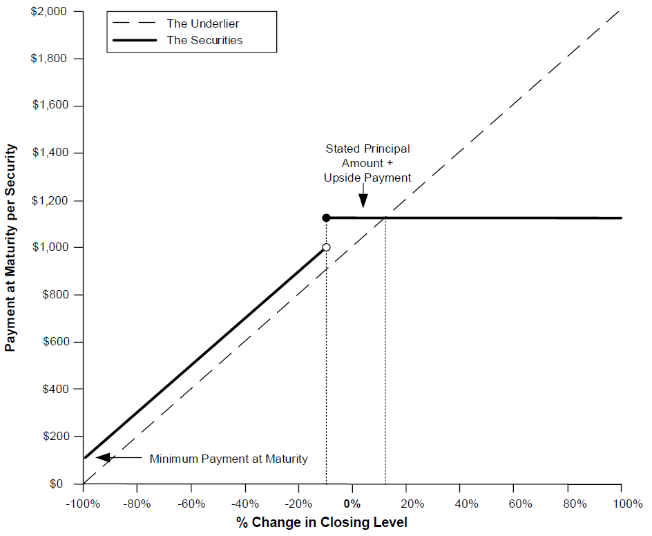 oIf the underlier depreciates 5%, investors will receive a 13.40% return, or $1,134 per security.