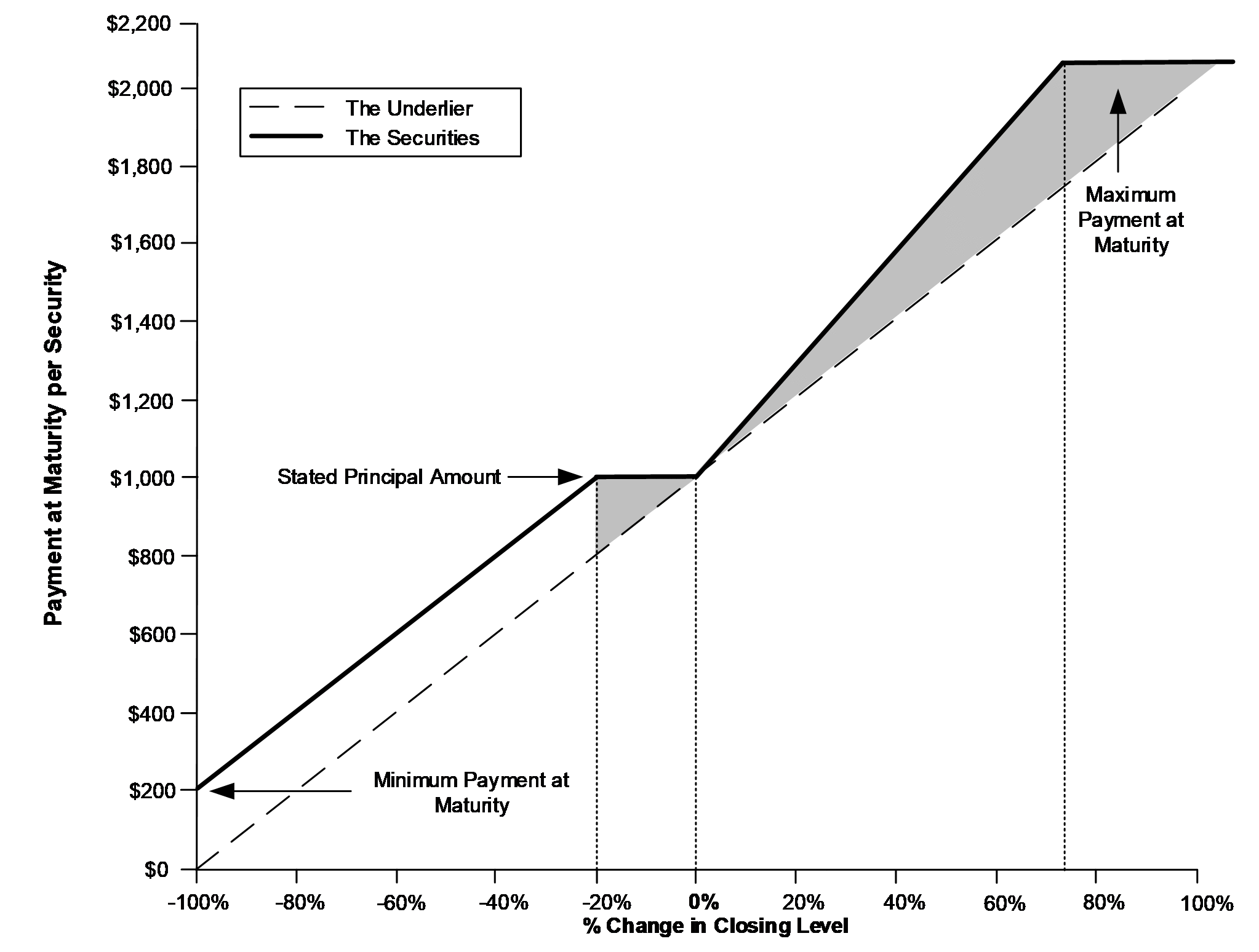 oIf the underlier appreciates 100%, investors will receive only the maximum payment at maturity of $2,110 per security, or 211% of the stated principal amount.