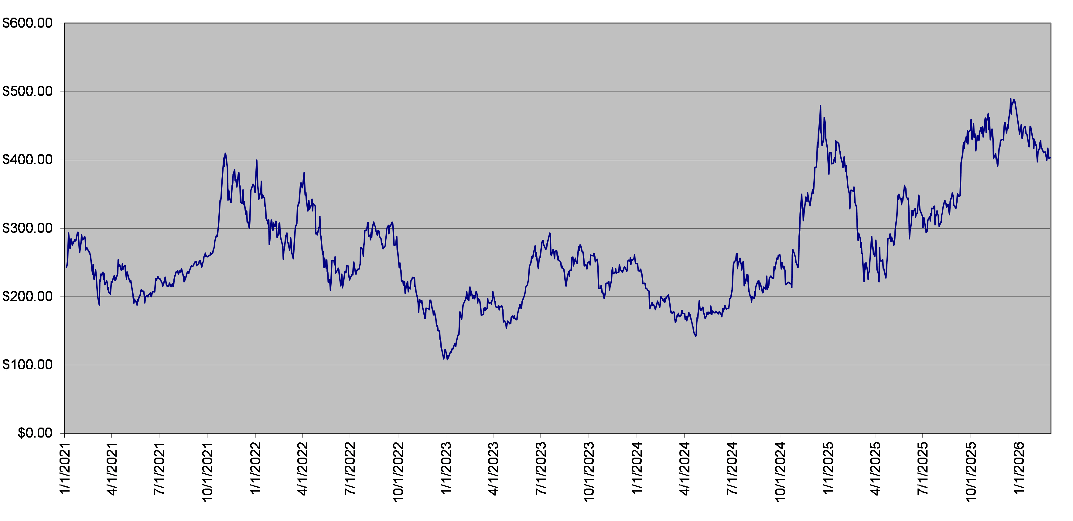 The closing level of the TSLA Stock on March 2, 2026 was $403.32. The following graph sets forth the daily closing levels of the underlier for the period noted below. We obtained the historical information presented in this document from Bloomberg Financial Markets, without independent verification. The underlier has at times experienced periods of high volatility. You should not take the historical closing levels of the underlier as an indication of its future performance, and no assurance can be given as to the closing level of the underlier at any time.