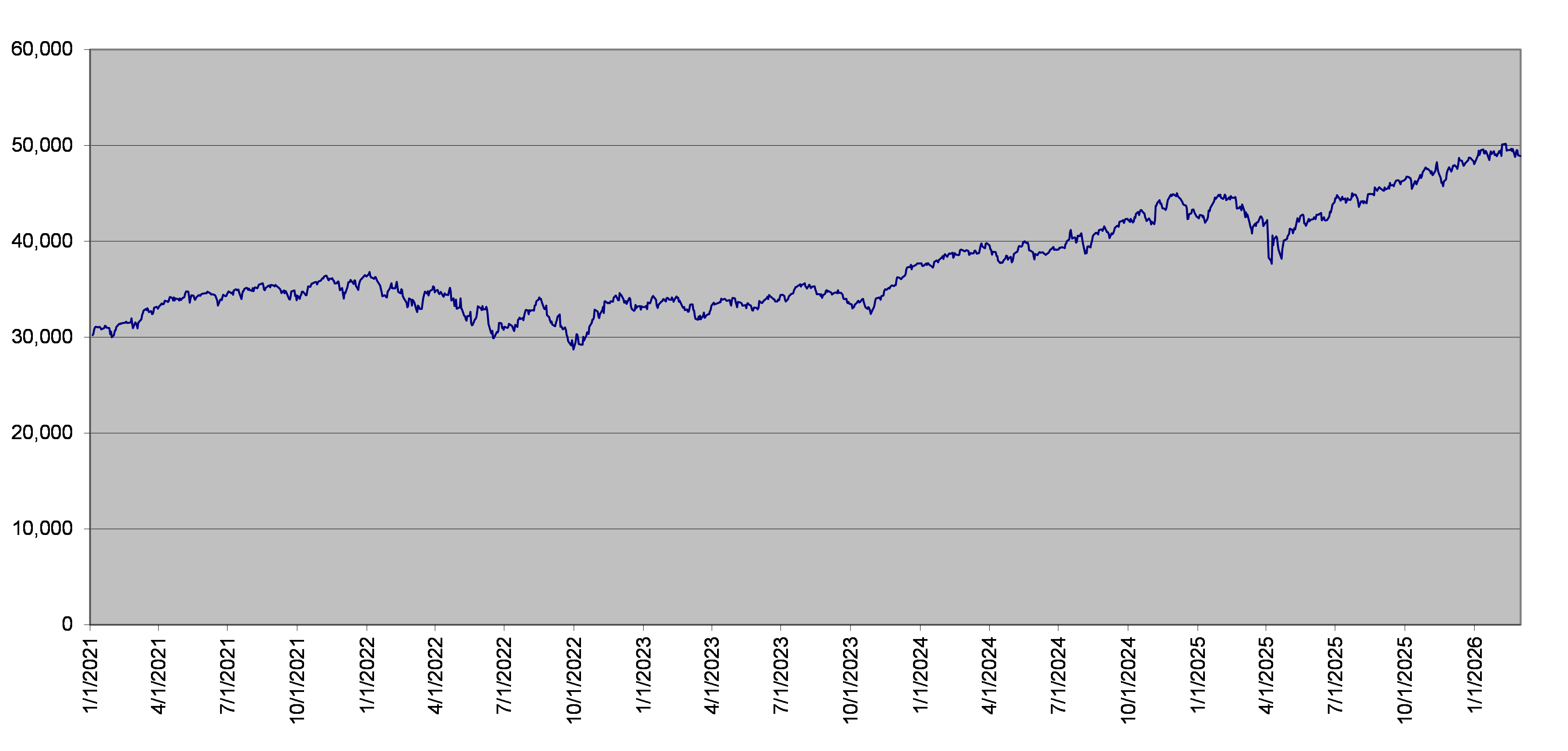 The closing level of the underlier on March 2, 2026 was 48,904.78. The following graph sets forth the daily closing levels of the underlier for the period noted below. We obtained the historical information presented in this document from Bloomberg Financial Markets, without independent verification. The underlier has at times experienced periods of high volatility. You should not take the historical closing levels of the underlier as an indication of its future performance, and no assurance can be given as to the closing level of the underlier at any time.