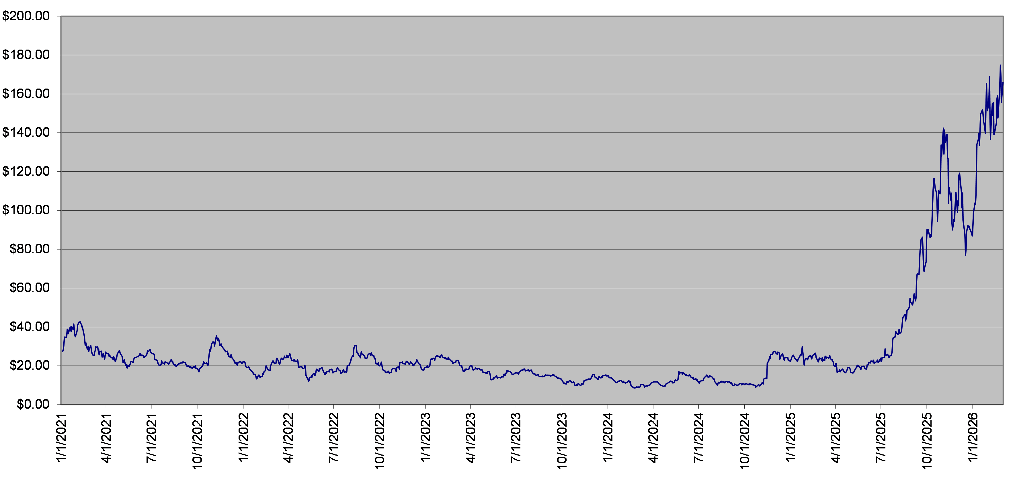 The closing level of the underlier on March 2, 2026 was $166.00. The following graph sets forth the daily closing levels of the underlier for the period noted below. We obtained the historical information presented in this document from Bloomberg Financial Markets, without independent verification. The underlier has at times experienced periods of high volatility. You should not take the historical closing levels of the underlier as an indication of its future performance, and no assurance can be given as to the closing level of the underlier at any time.