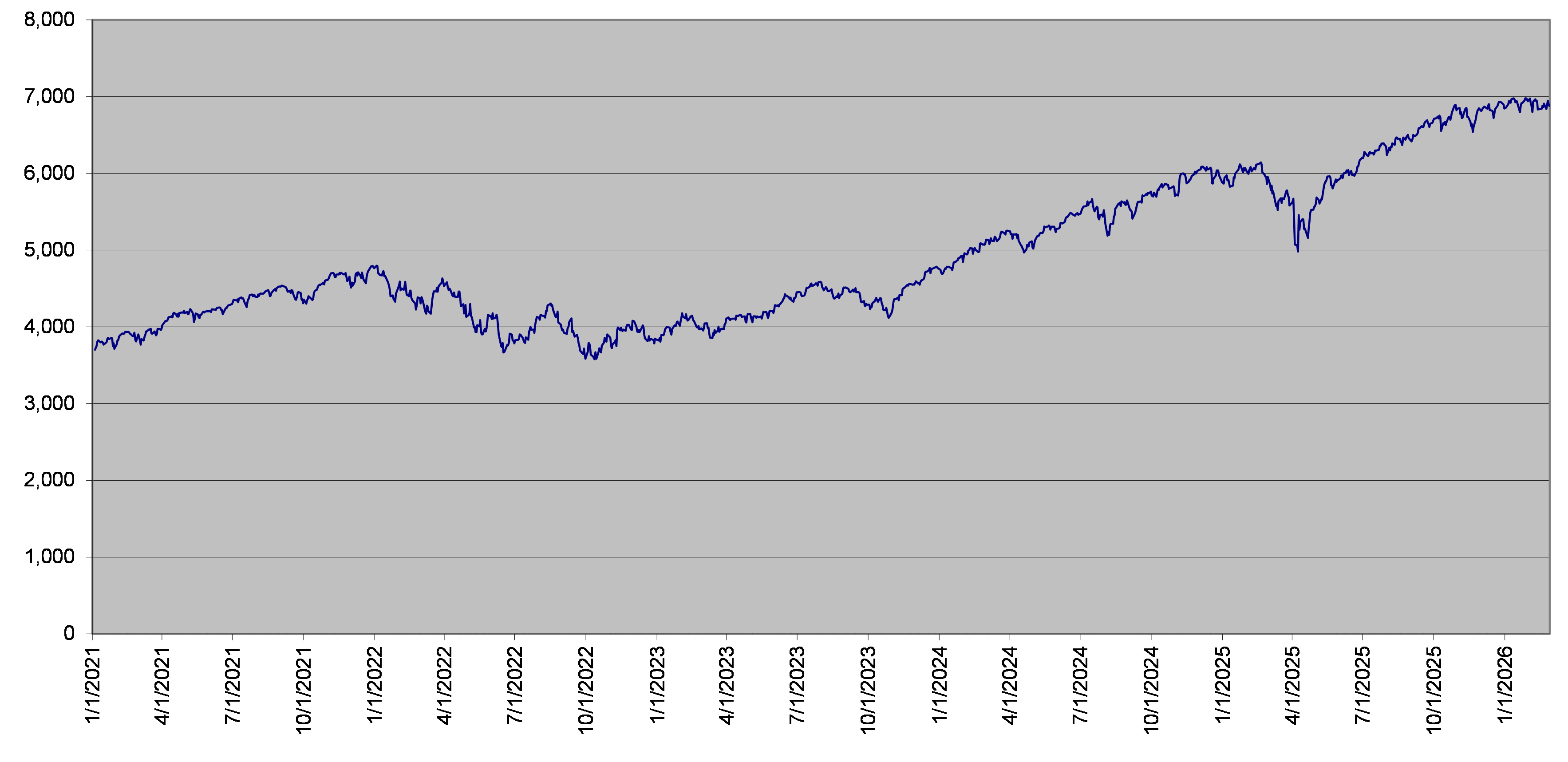SPX Index Daily Closing Levels January 1, 2021 to February 27, 2026 |