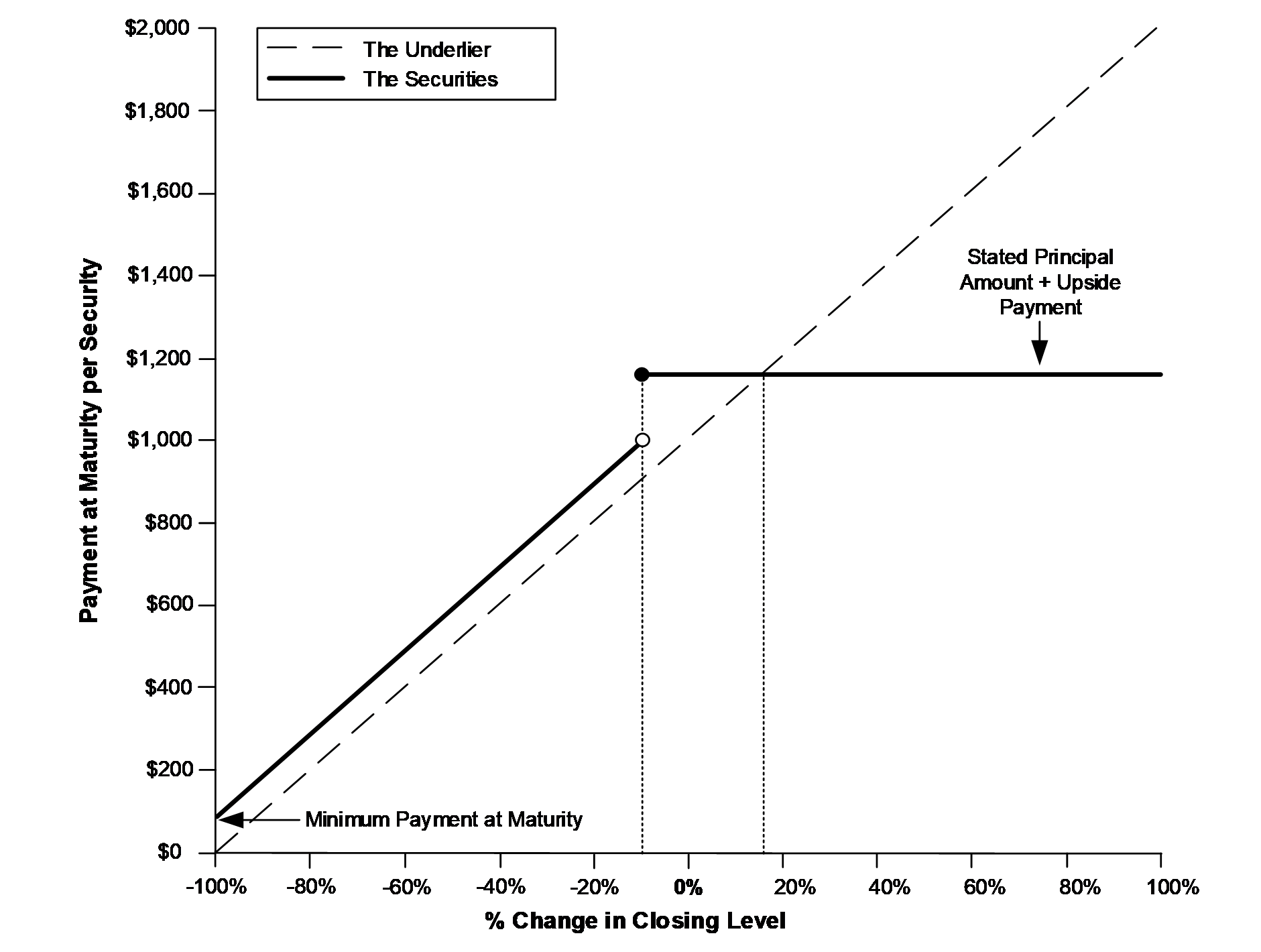 oIf the underlier appreciates 100%, investors will receive a 15.95% return, or $1,159.50 per security.
