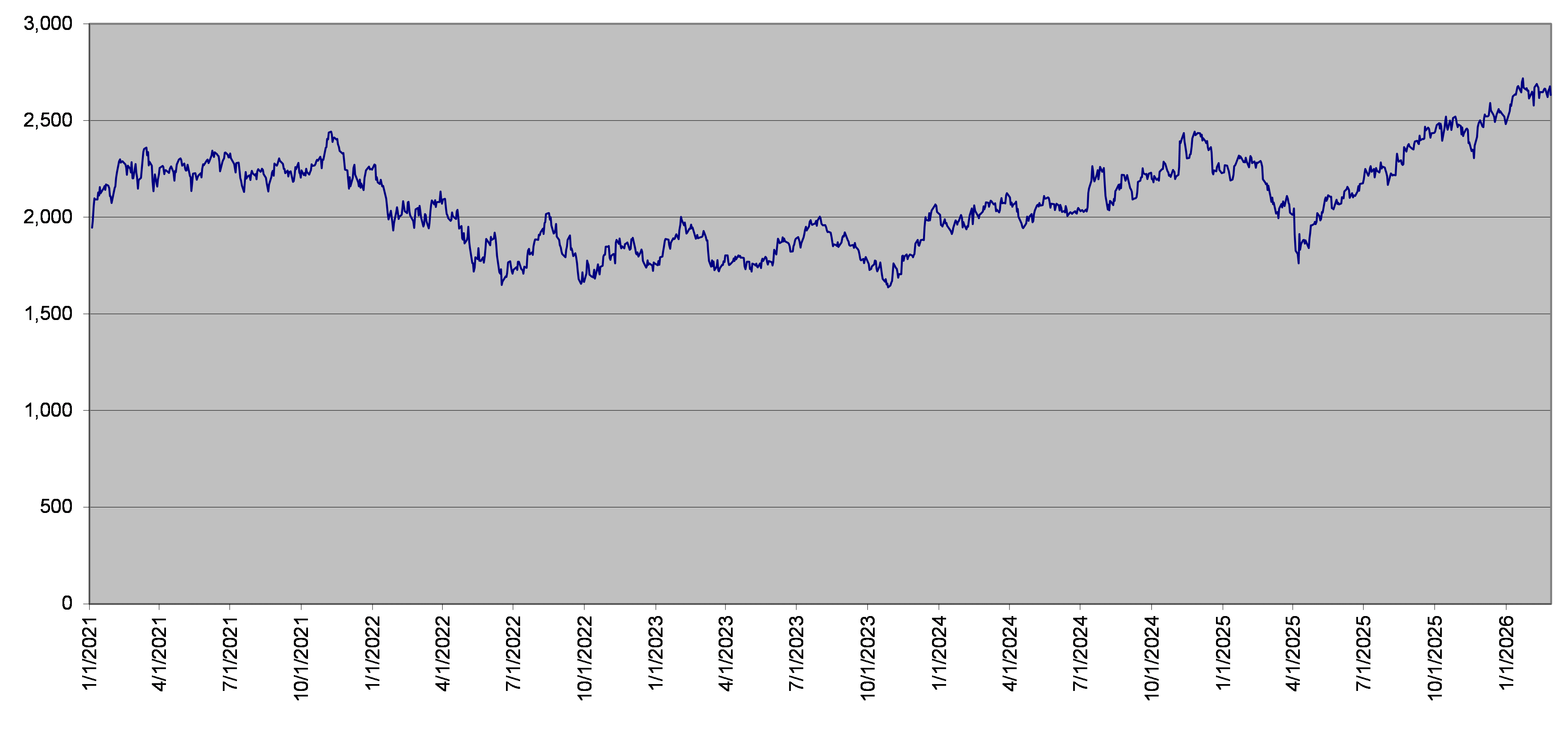 INDU Index Daily Closing Levels January 1, 2021 to February 27, 2026 |