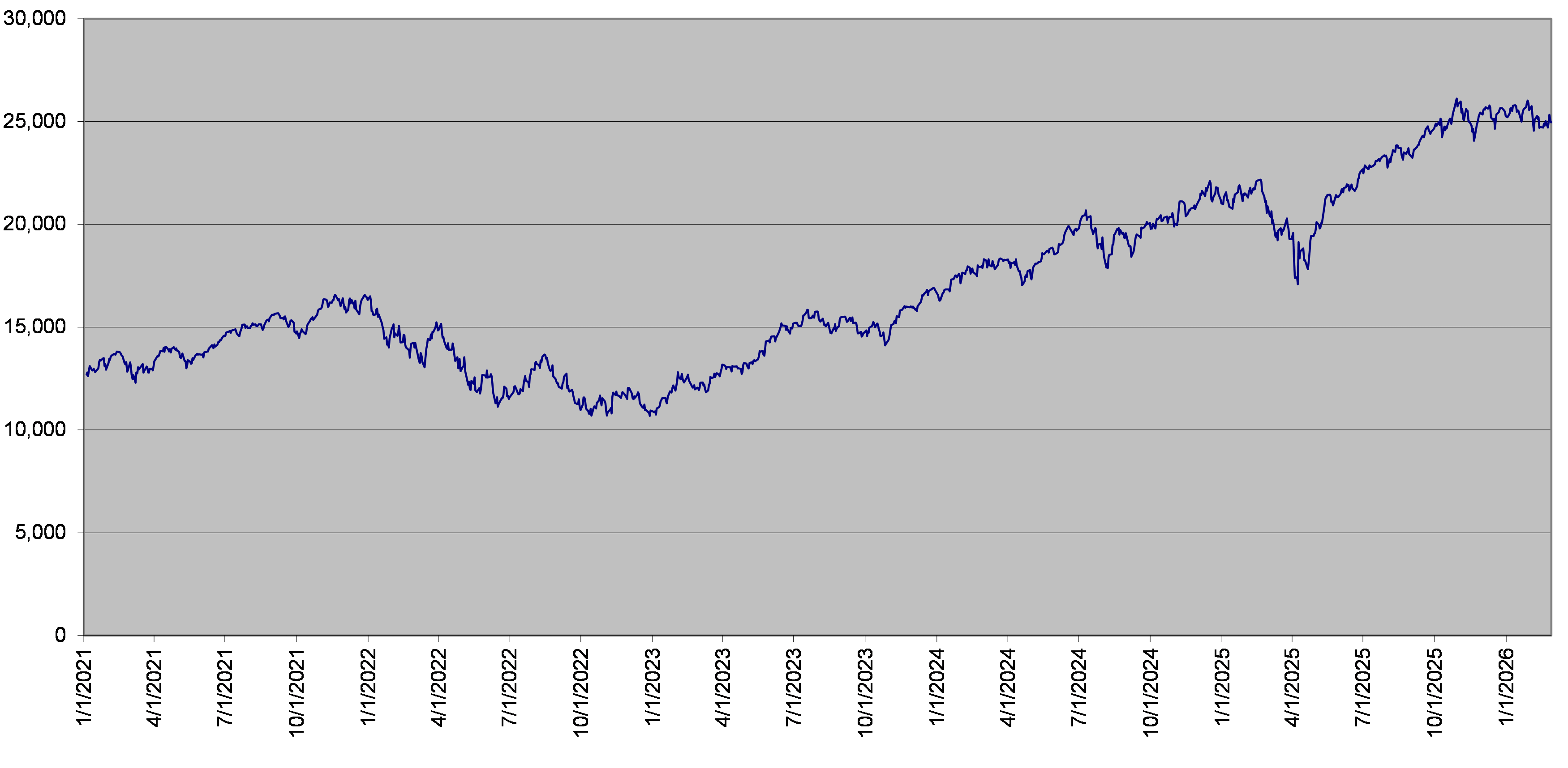 NDX Index Daily Closing Levels January 1, 2021 to February 27, 2026 |
