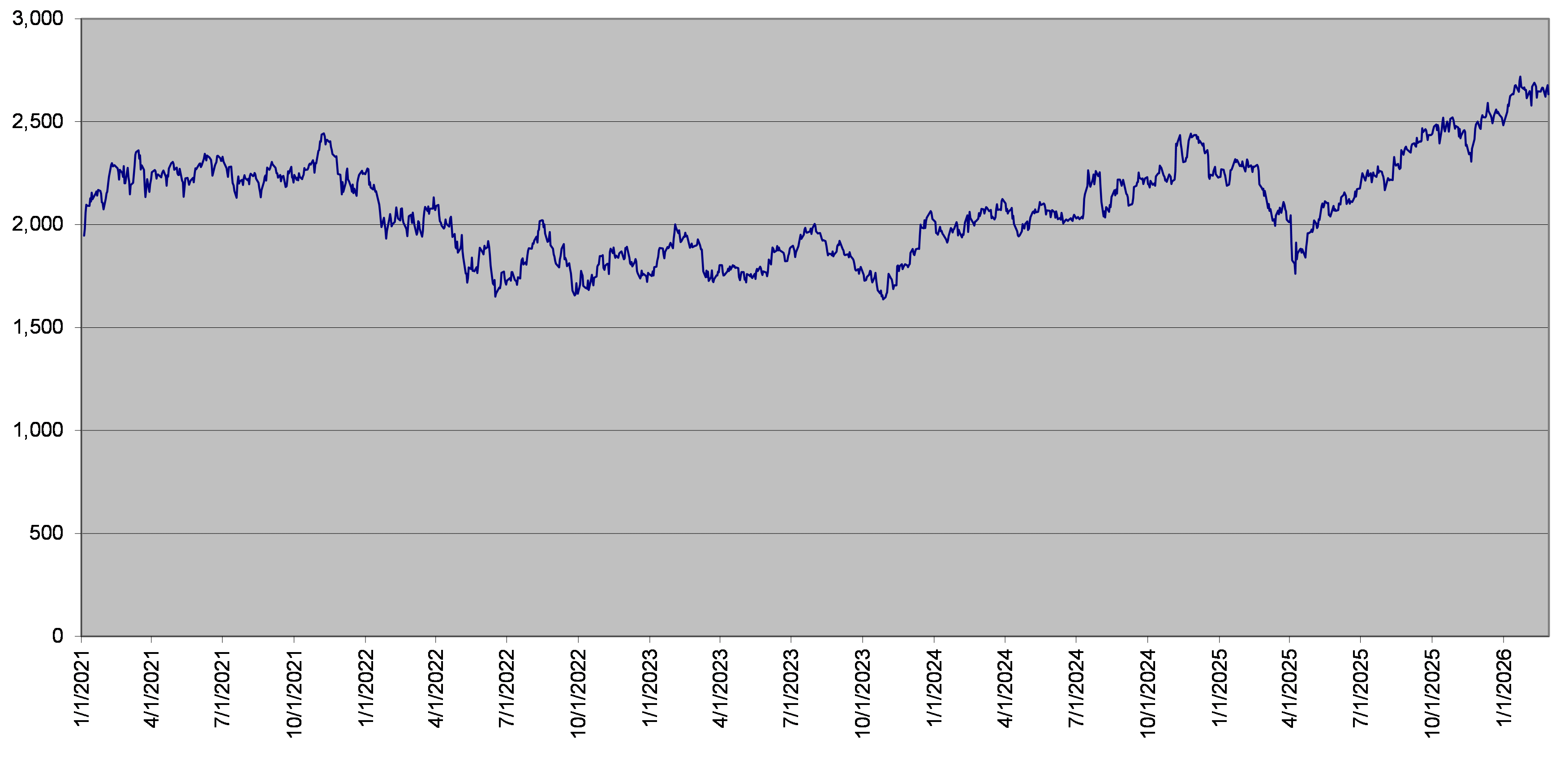 SPX Index Daily Closing Levels January 1, 2021 to February 27, 2026 |