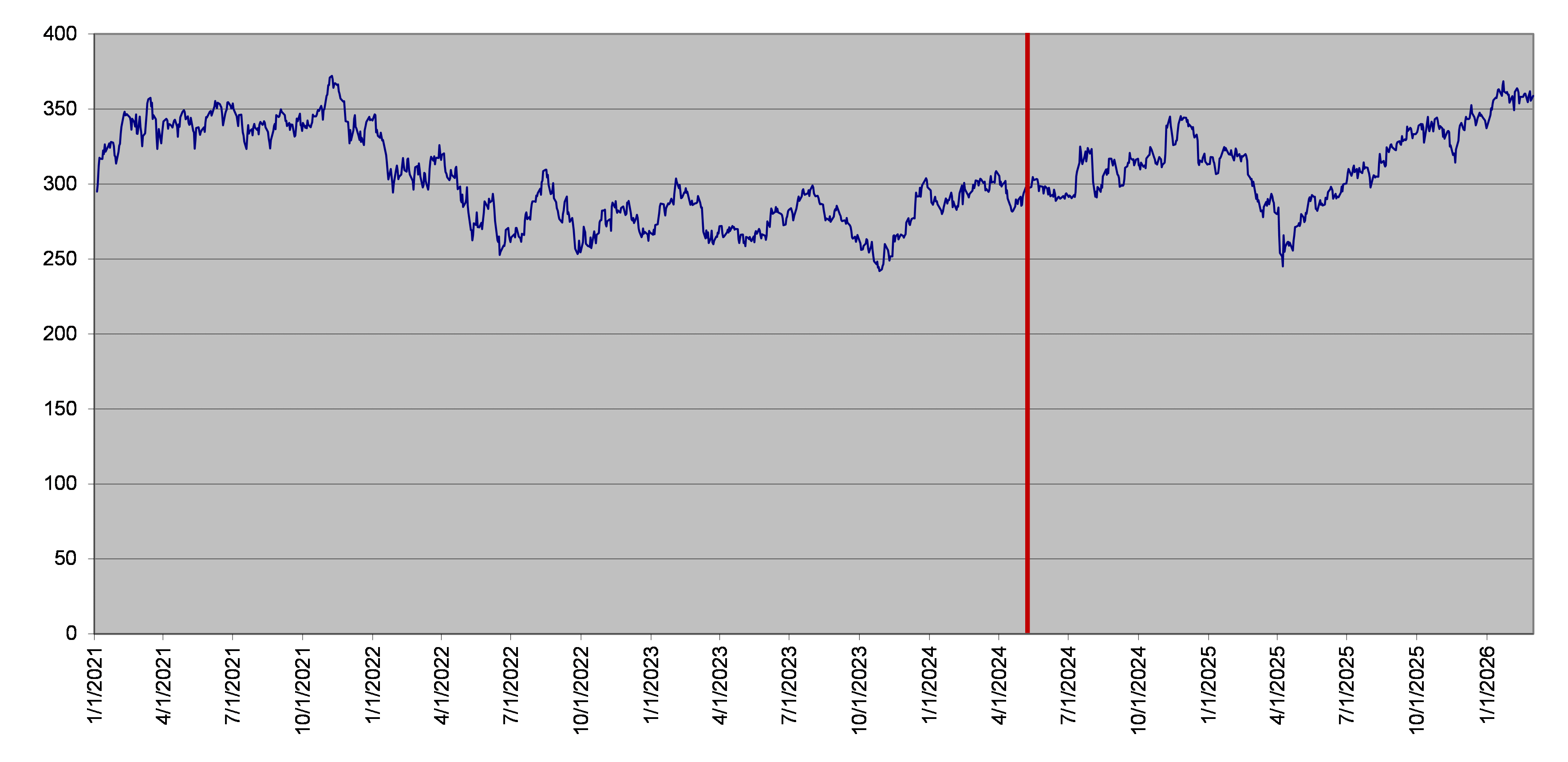 The closing level of the SPXFP Index on March 2, 2026 was 556.98. The following graph sets forth the daily closing levels of the underlier for the period noted below. We obtained the historical information presented in this document from Bloomberg Financial Markets, without independent verification. The underlier has at times experienced periods of high volatility. You should not take the historical closing levels of the underlier as an indication of its future performance, and no assurance can be given as to the closing level of the underlier at any time.