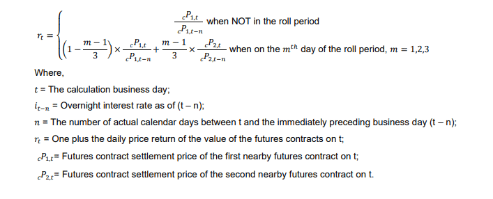 The RTYFPE Index is the excess return version of the Russell 2000 Futures Index, which measures the performance of the nearest maturing quarterly E-mini Russell 2000 futures contract trading on the CME. The RTYFPE Index includes a provision for the replacement of the E-mini Russell 2000 futures contract as the contract approaches maturity (also referred to as “rolling” or “the roll”). This replacement occurs over a three-day rolling period every March, June, September and December, effective after the close of trading five business days preceding the last trading date of the E-mini Russell futures contract.