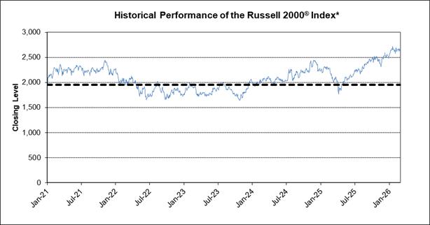 The following graph sets forth daily closing levels of the RTY Index for the period from January 1, 2021 to March 3, 2026. The closing level on March 3, 2026 was 2,608.357.