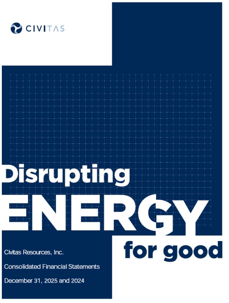 We have audited the consolidated financial statements of Civitas Resources, Inc and subsidiaries (the "Company"), which comprise the consolidated balance sheets as of December 31, 2025 and December 31, 2024, and the related consolidated statements of operations, stockholders' equity, and cash flows for the years then ended, and the related notes to the consolidated financial statements (collectively referred to as the "financial statements").