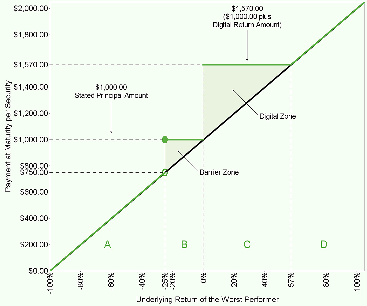 •If the final underlying value of the worst performer is greater than or equal to its initial underlying value: $1,000 + the greater of (i) the digital return amount and (ii) $1,000 × the underlying return of the worst performer •If the final underlying value of the worst performer is less than its initial underlying value but greater than or equal to its final barrier value: $1,000 •If the final underlying value of the worst performer is less than its final barrier value: $1,000 + ($1,000 × the underlying return of the worst performer) If the final underlying value of the worst performer is less than its final barrier value, you will receive significantly less than the stated principal amount of your securities, and possibly nothing, at maturity. All payments on the securities are subject to the credit risk of Citigroup Global Markets Holdings Inc. and Citigroup Inc. |